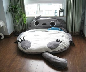 He has many geek loves, but the greatest one has to be Miyazaki. I have yet to see him not get excited over any of the Totoro accessories/photos given to him. I’m pretty sure if he had his way, he would have this bed: