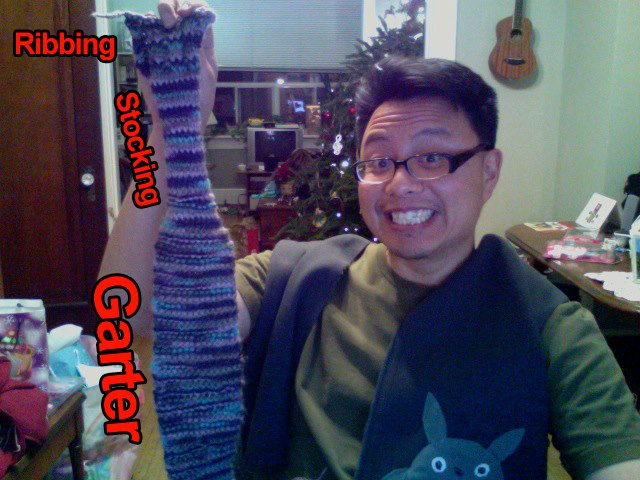 Take knitting, for example. He has become a knitting machine. When did he start? December. He started out by knitting this in a day: