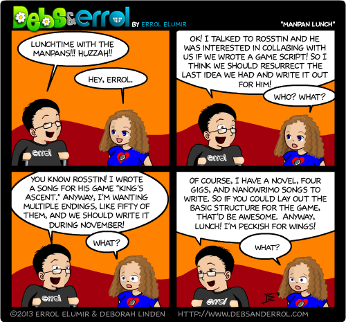 I attempted to voice my concerns to Errol, who was busy with his gigs and EP release and nanotoons and NaNo novel. What was his reply? Guess. Just guess.