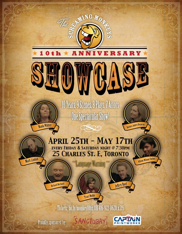 This week I open a show with Screaming Monkeys, a theatre company that focuses on providing a theatrical outlet to the marginalized communities of Toronto. I’ve been working off and on with them for about six years now, and wouldn’t you know it, this year is their 10th anniversary! To celebrate they’re performing a sort of clips show of favourite scenes and skits they’ve done over the past ten years.