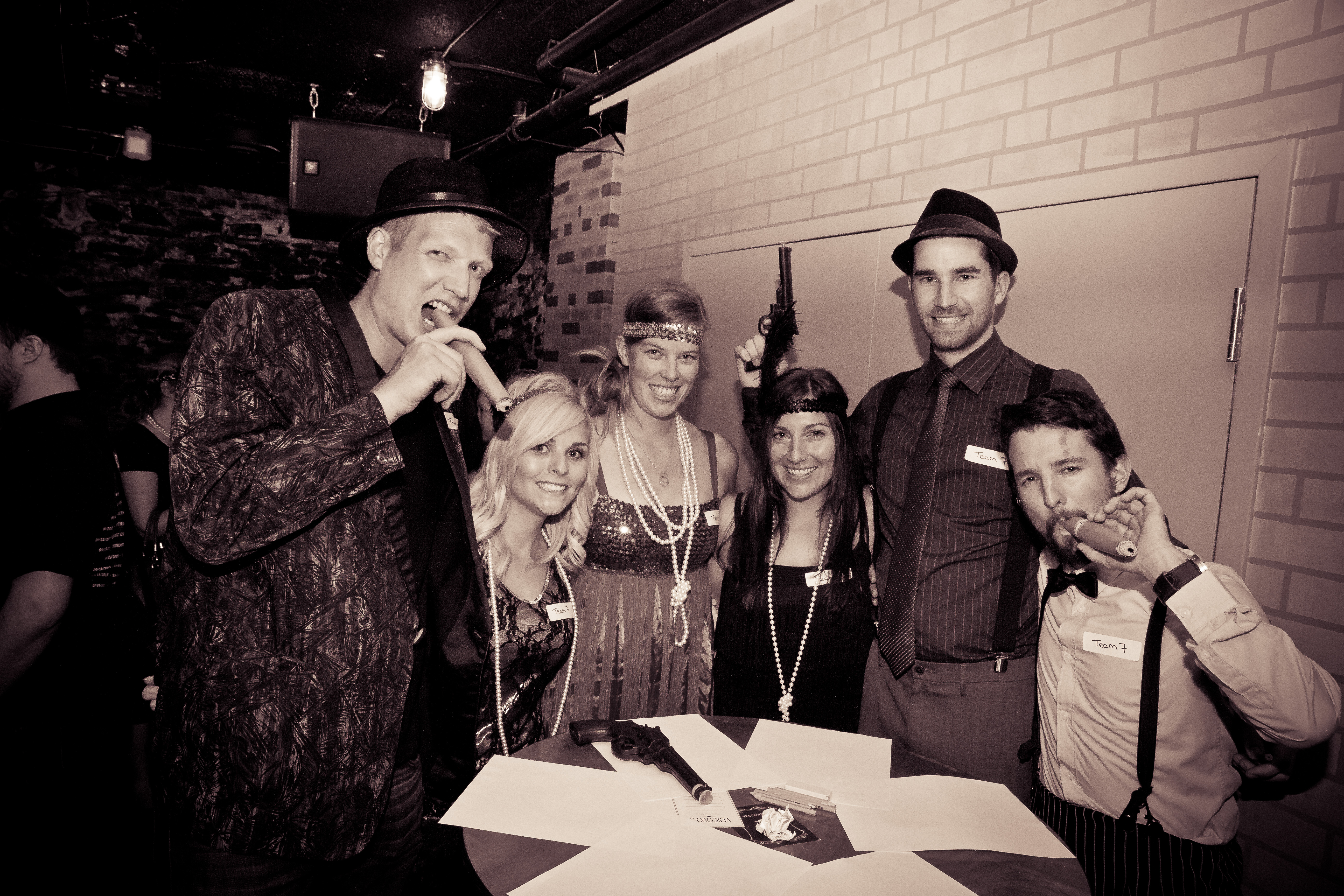 Anyway! Back to the evening! We peeked out at the players entering the venue and discovered that the majority of them had dressed up for the speakeasy! Some had a few accessories. Others went all out with dresses, fedoras, giant cigars and in one group’s case fake guns. It was thrilling to see people this excited for the event. More importantly, it was a great example of the audience adding to the immersion of the game.