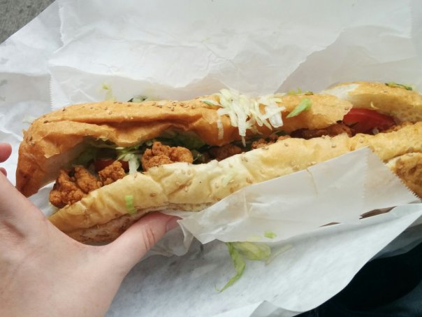 Speaking of which, convenience stores also seem to double as food stands more often here. On a friend’s recommendation, I got a fried shrimp po’boy from a decrepit looking convenience store in the French quarter. It is amongst the best things I have eaten here.