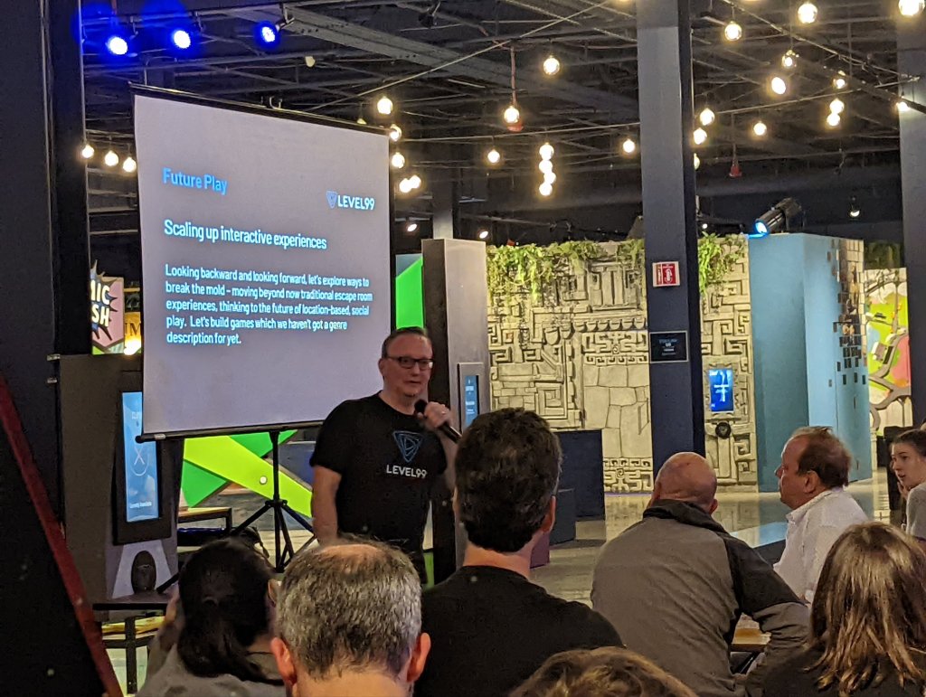 After Victor was Matthew DuPlessie, founder of Level 99 and the Five Wits Escape rooms. His talk was called Future Play, Scaling Up Interactive Experiences. I also had trouble hearing this one. The bits that I did manage to hear were around increasing your ambition for what you could accomplish in your own escapes, along with various reminders that escape rooms are businesses. In the end, they do have to make money.