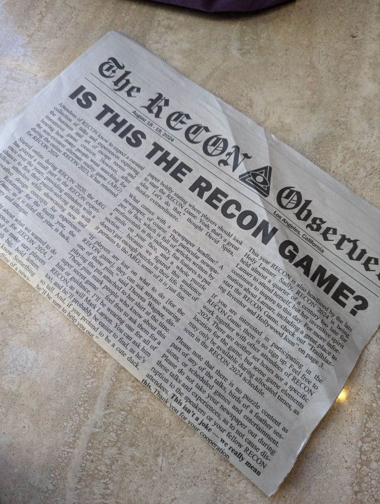 It was a lot of fun though. I can’t spoil too much right now because…well, the game is still going at this point. It made a good use of the convention space though as well as encouraged us to talk to other attendees. Plus it resulted in a newspaper chock full of escape Easter eggs.